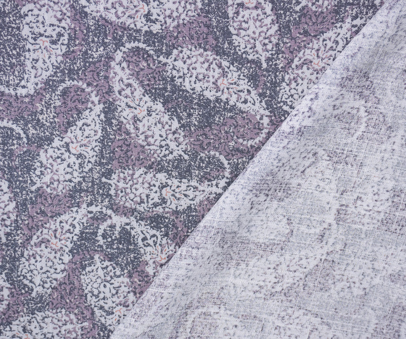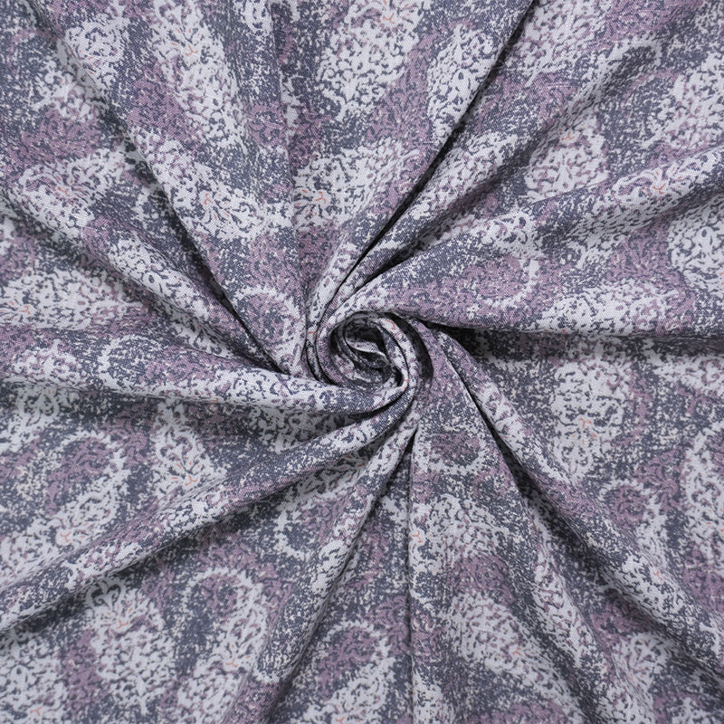 Gray-Purple-Orange Rayon Paisley Printed Slub Challis Woven Fabric