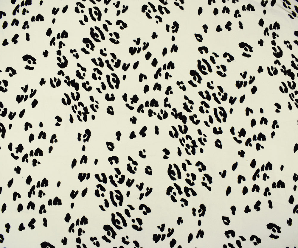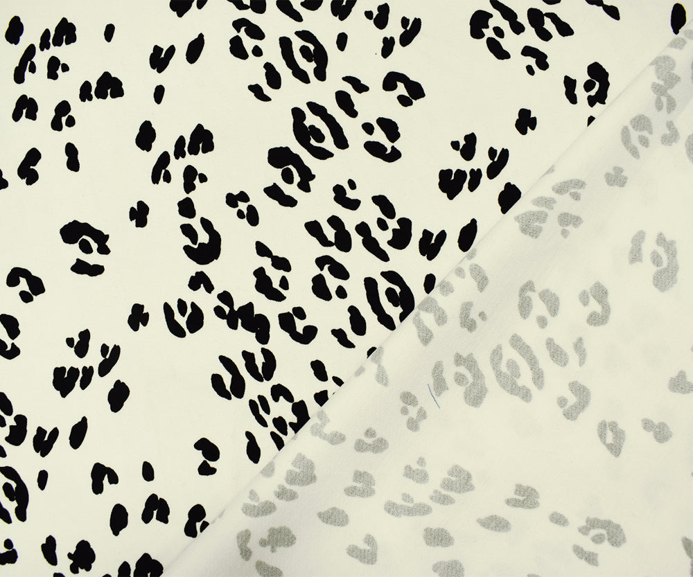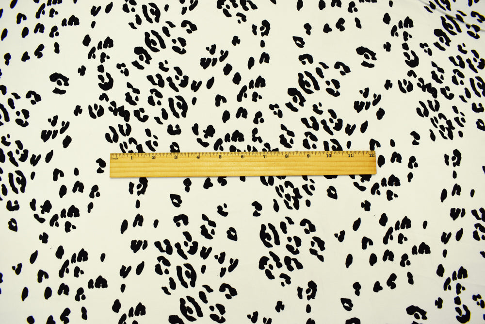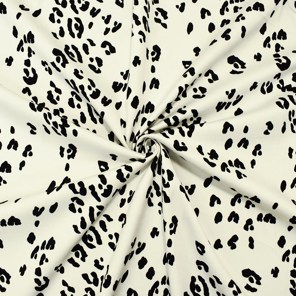 Ivory-Black Cotton Famous Maker Stretch Spandex Leopard Print Twill Fabric