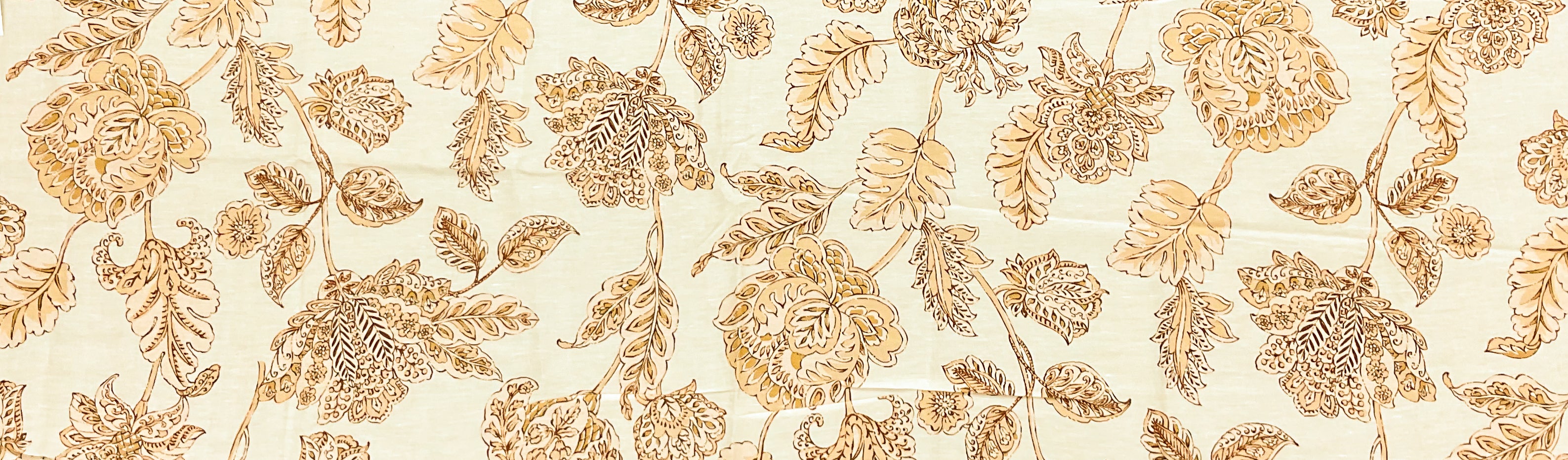Ivory-Multi Flax Blend Famous Designer Floral Printed Slub Woven Fabric