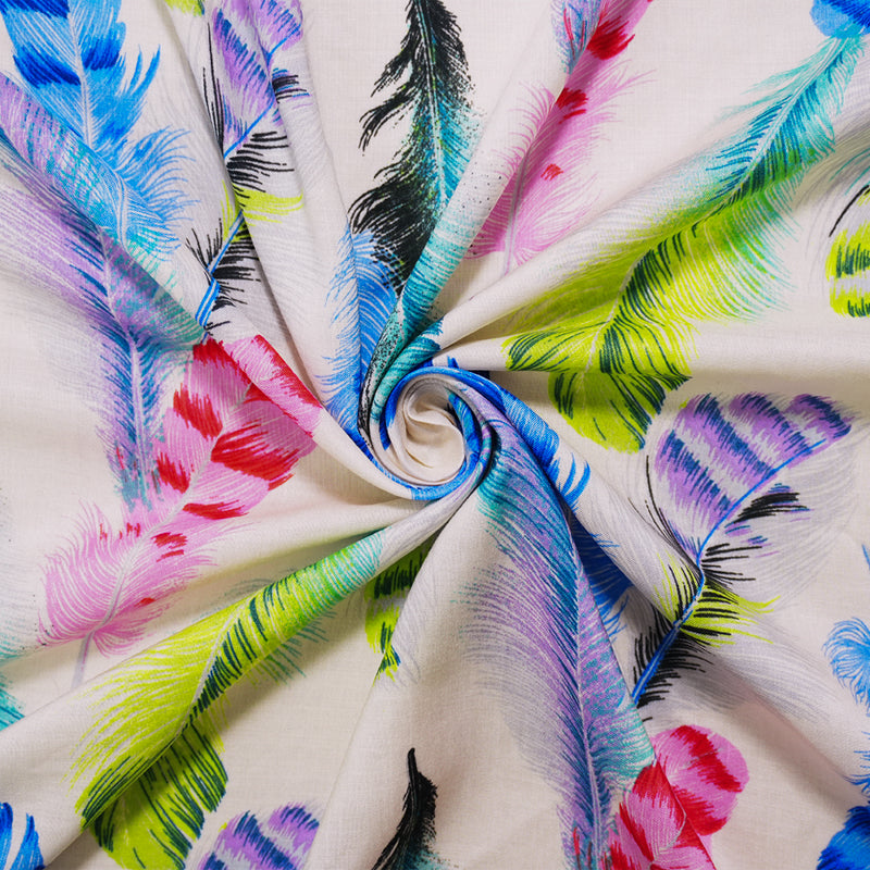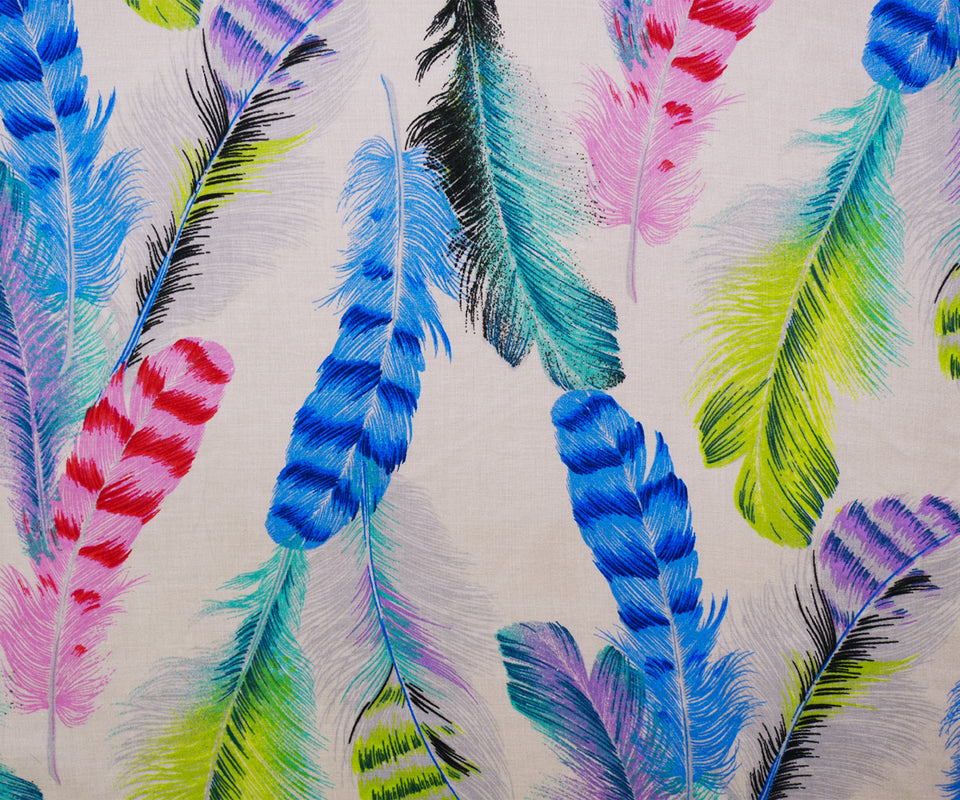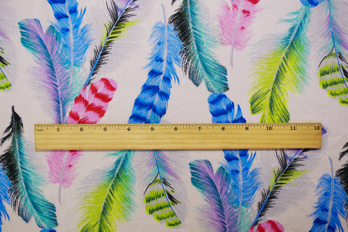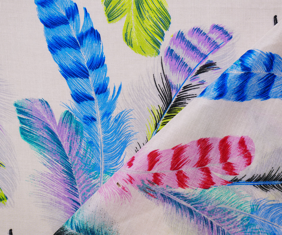 Light Beige-Multi Rayon Feather Printed Voile Woven Fabric