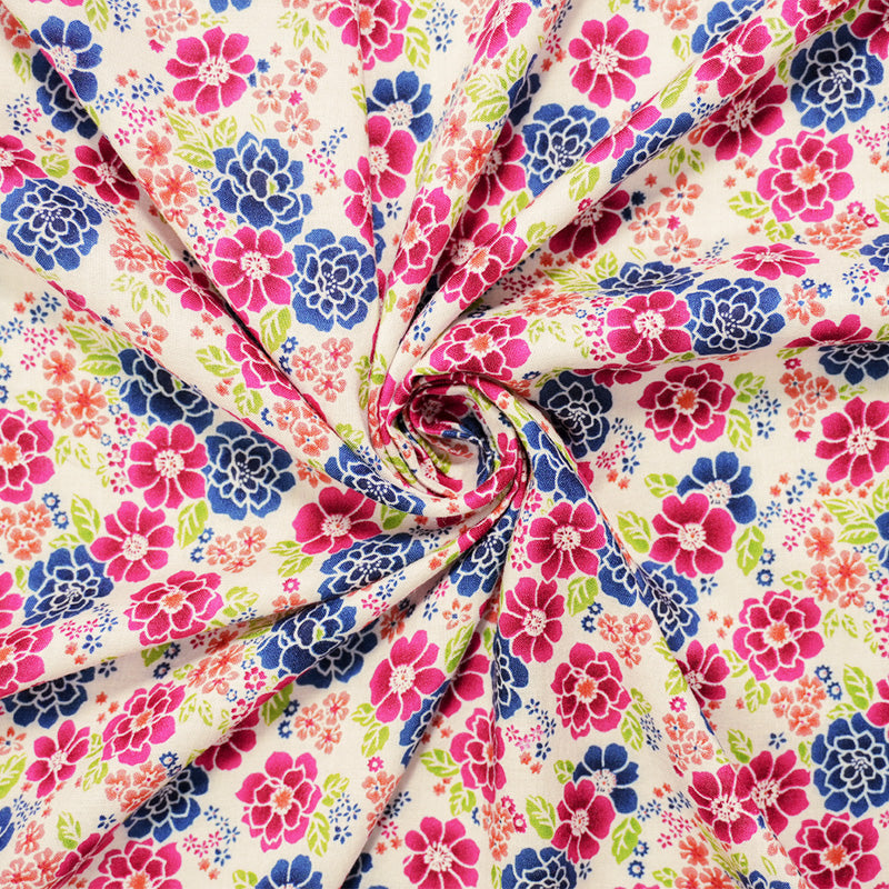 -This rayon fabric showcases an all-over floral print on a lightweight voile base. The soft woven construction provides a beautiful fluid drape, ideal for creating blouses.