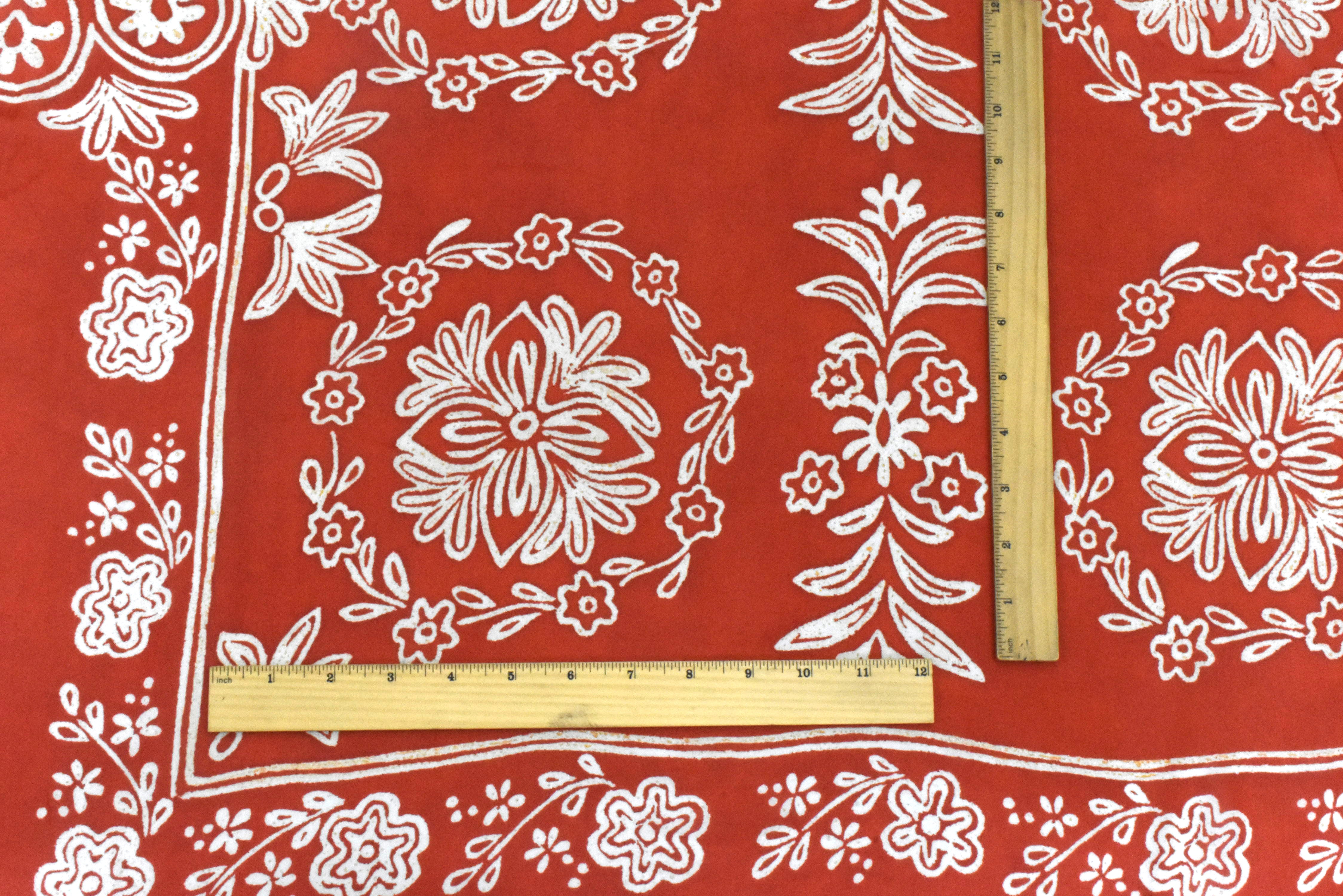 Red-Ivory-Orange Famous Designer Floral Print Rayon Georgette Fabric