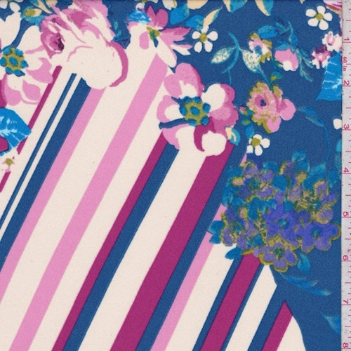 Sapphire/Magenta Floral Patchwork Sanded Crepe Fabric
