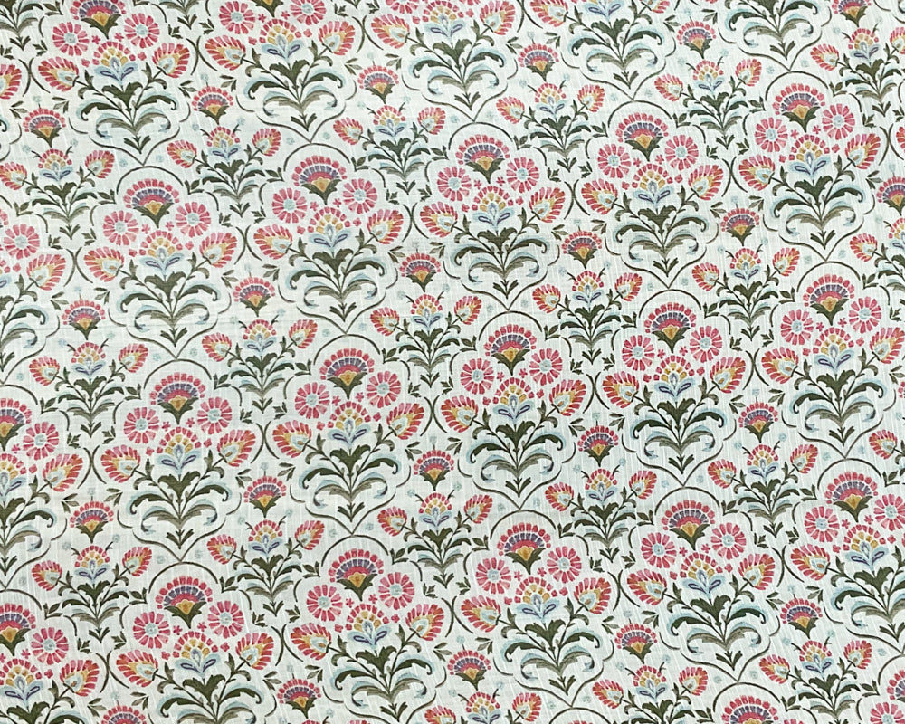 White-Green-Multi Poly Floral Printed Crinkle Yoryu Chiffon Woven Fabric