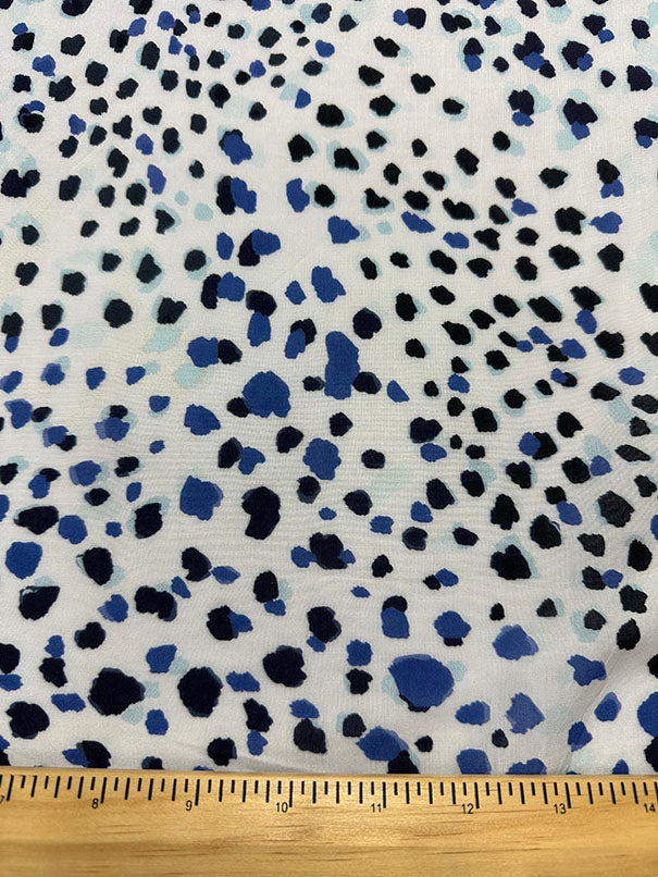 -Blue, Black, & White Cheetah Print Rayon Lawn Fabric