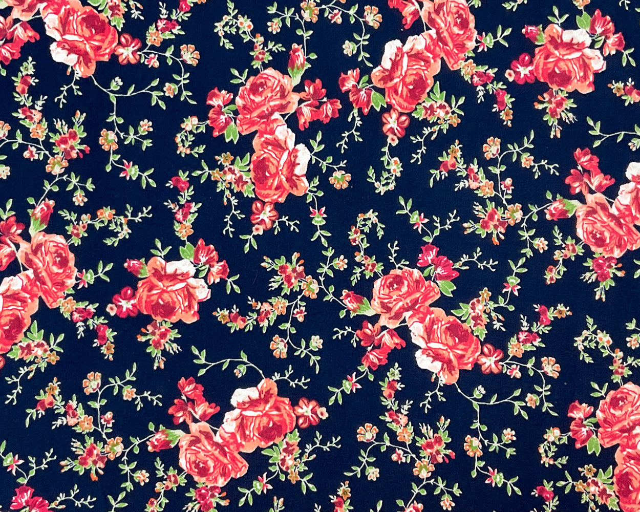 -Blue-Multi Poly Spandex Stretch Floral Print Double Brush Jersey Knit Fabric