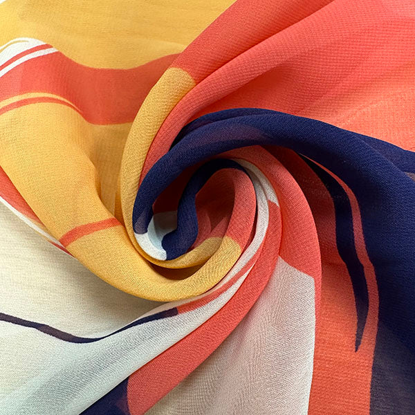 Orange Multi Leaf Print Poly Chiffon Fabric