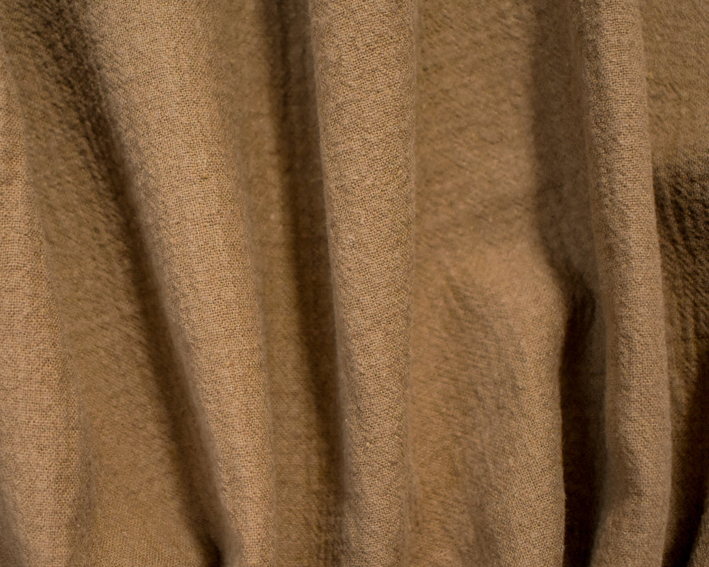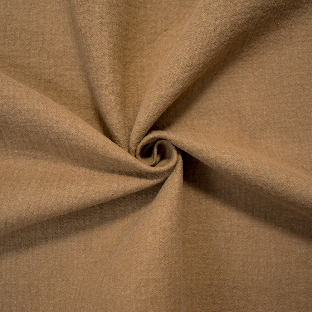 Brown Linen-Cotton Blend Crinkled Double Woven Fabric