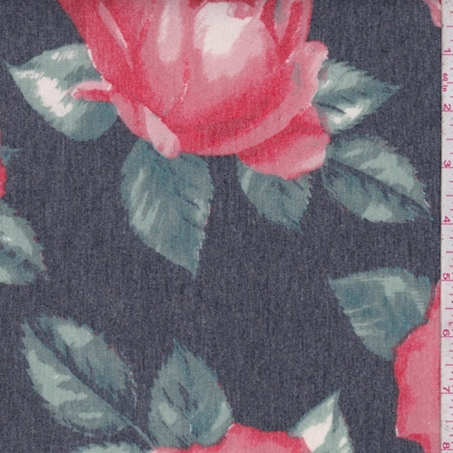 Heather Midnight/Coral Rose Baby French Terry Knit Fabric