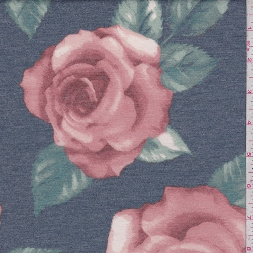Heather Navy/Copper Rose Baby French Terry Knit Fabric