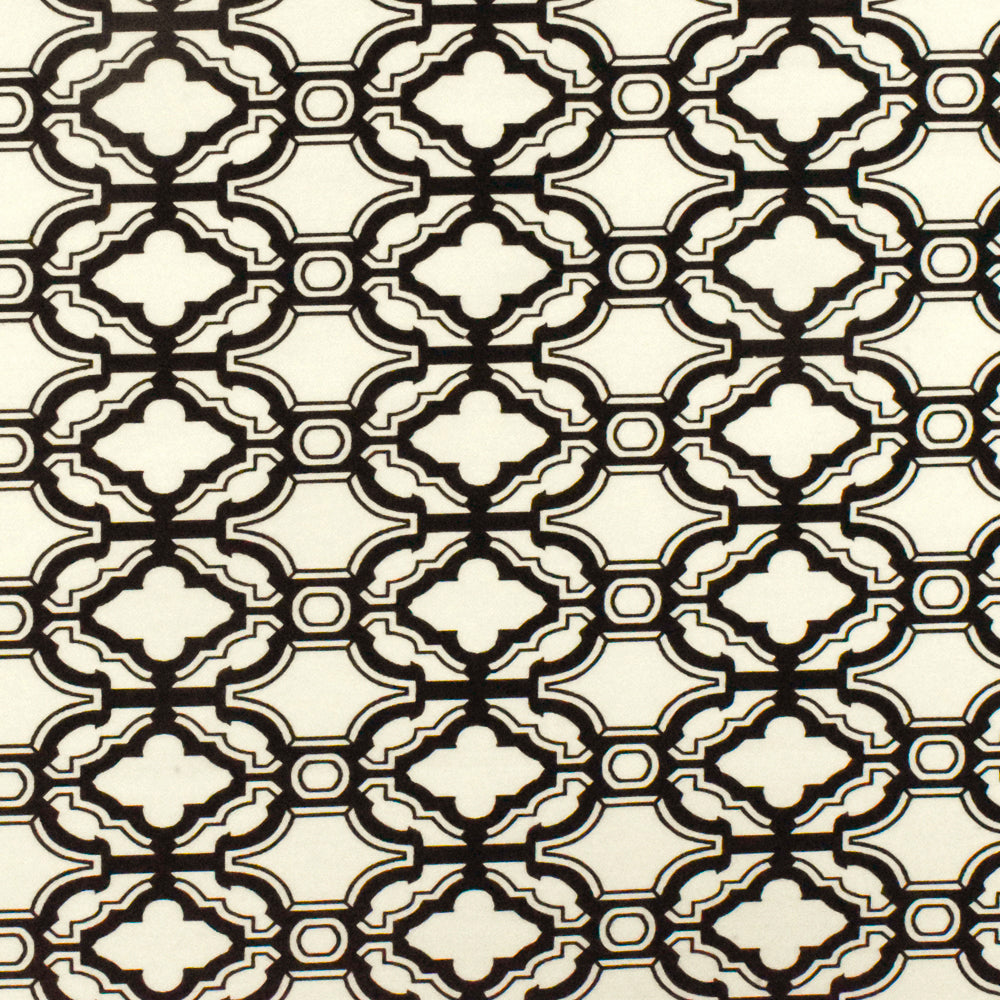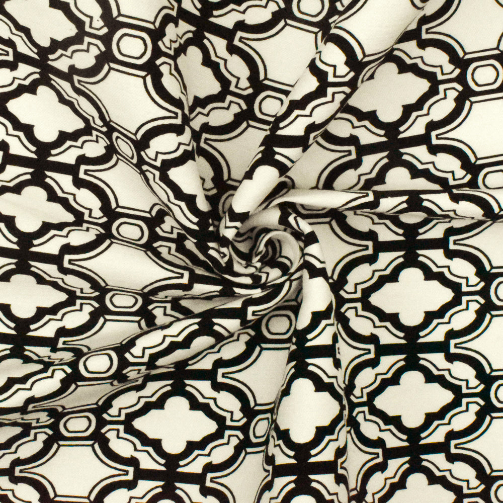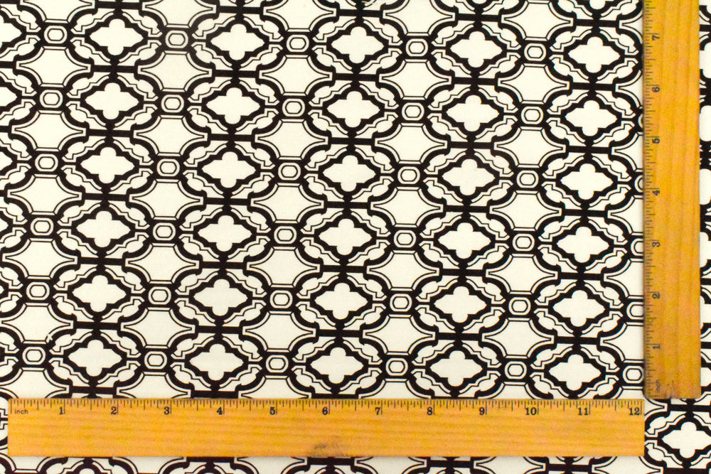 Ivory-Black Fancy Quatrefoil Printed Stretch Twill Woven Fabric