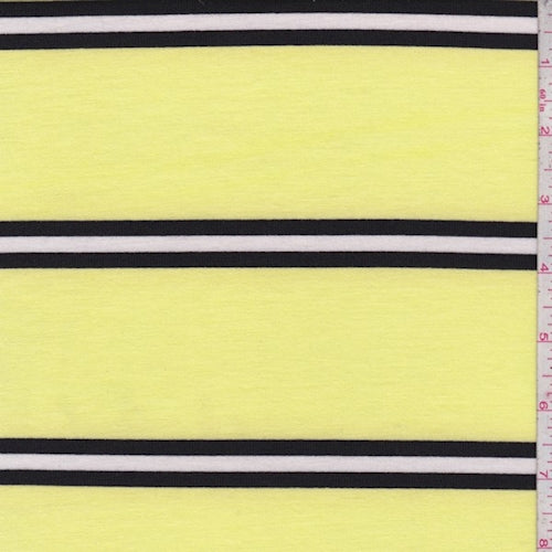 Lemon/Black Stripe Double Brushed French Terry Knit Fabric