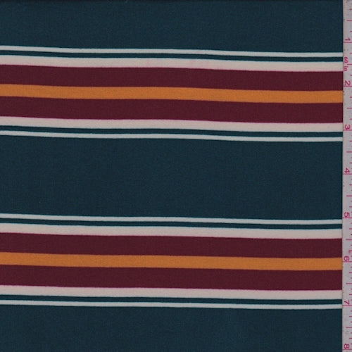 Spruce/Wine/Gold Stripe Double Brushed Jersey Knit Fabric