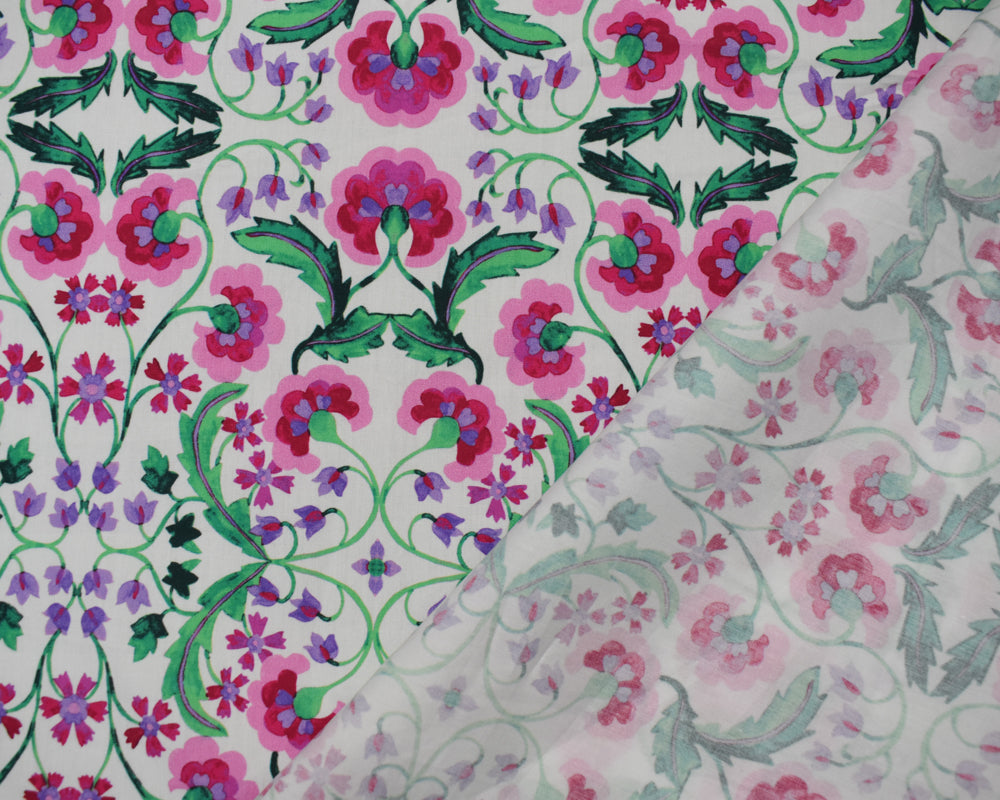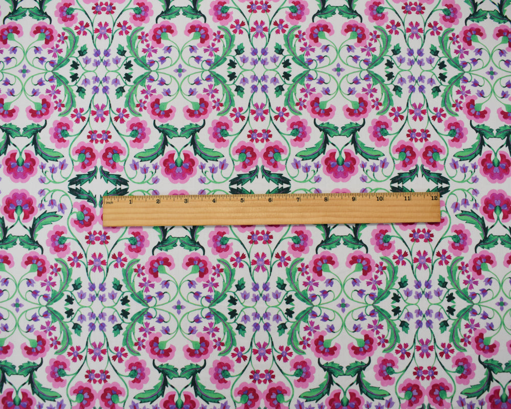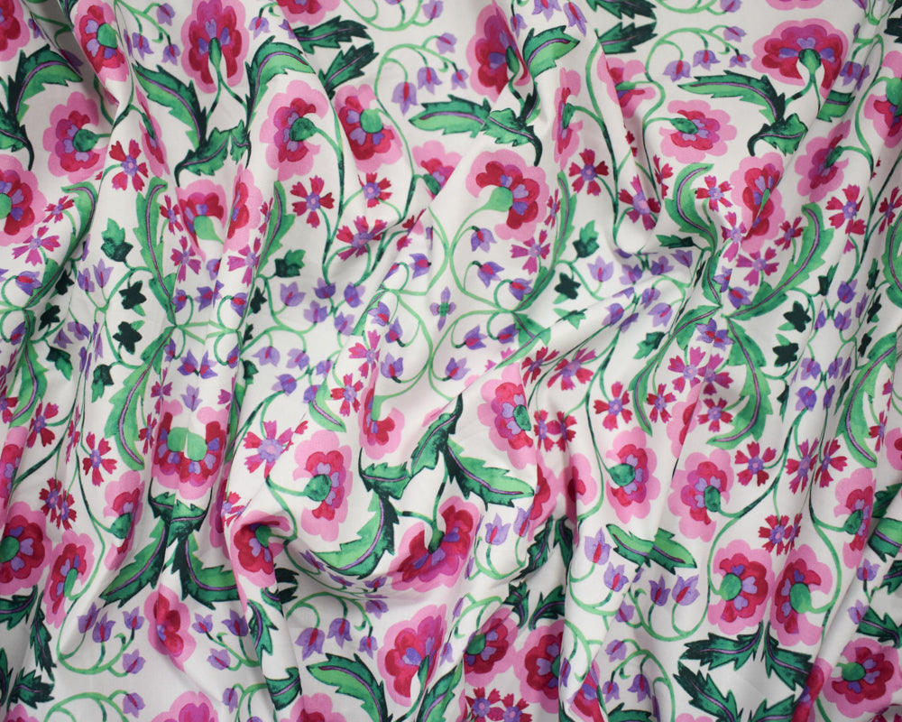 Pink-Purple-Green-Multi Cotton Floral Trellis Printed Broadcloth Woven Fabric