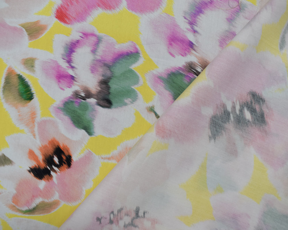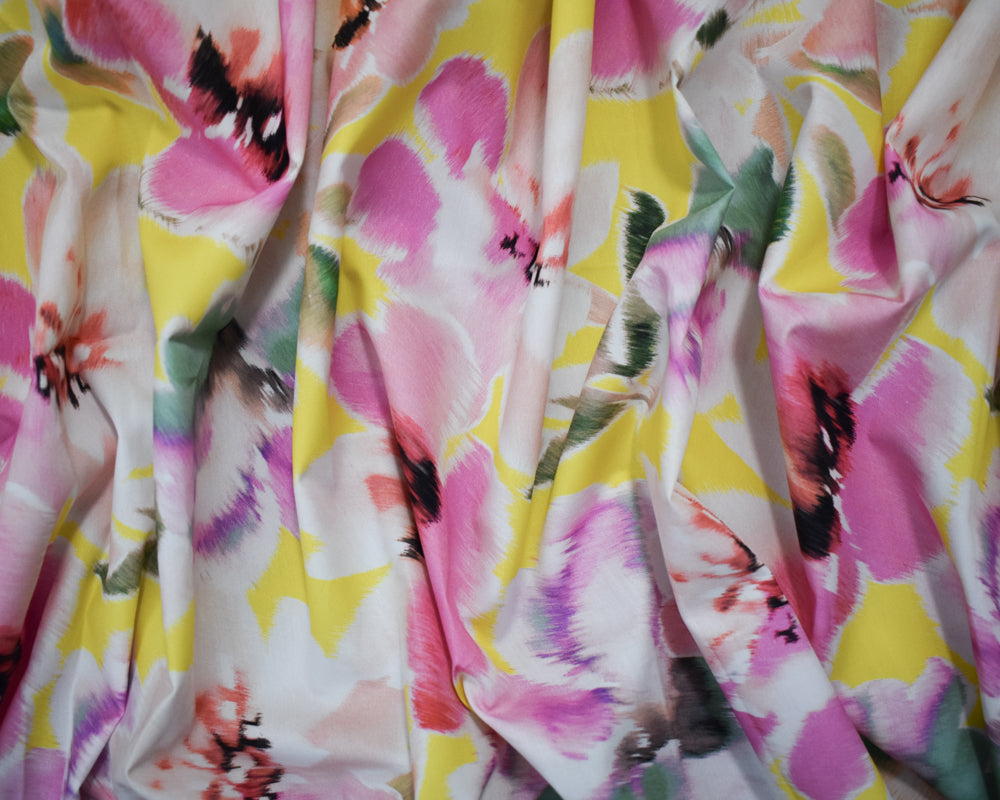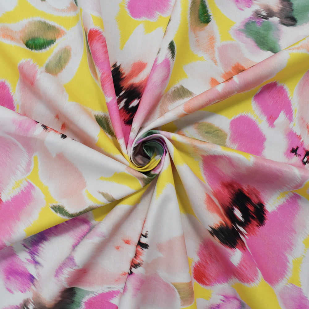 Pink-Yellow-Multi Cotton Floral Printed Broadcloth Woven Fabric