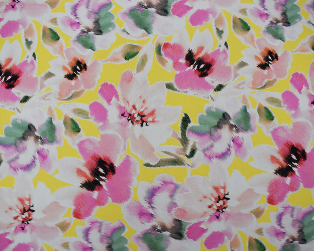 -100% Cotton plain woven broadcloth fabric printed with a watercolor inspired floral pattern