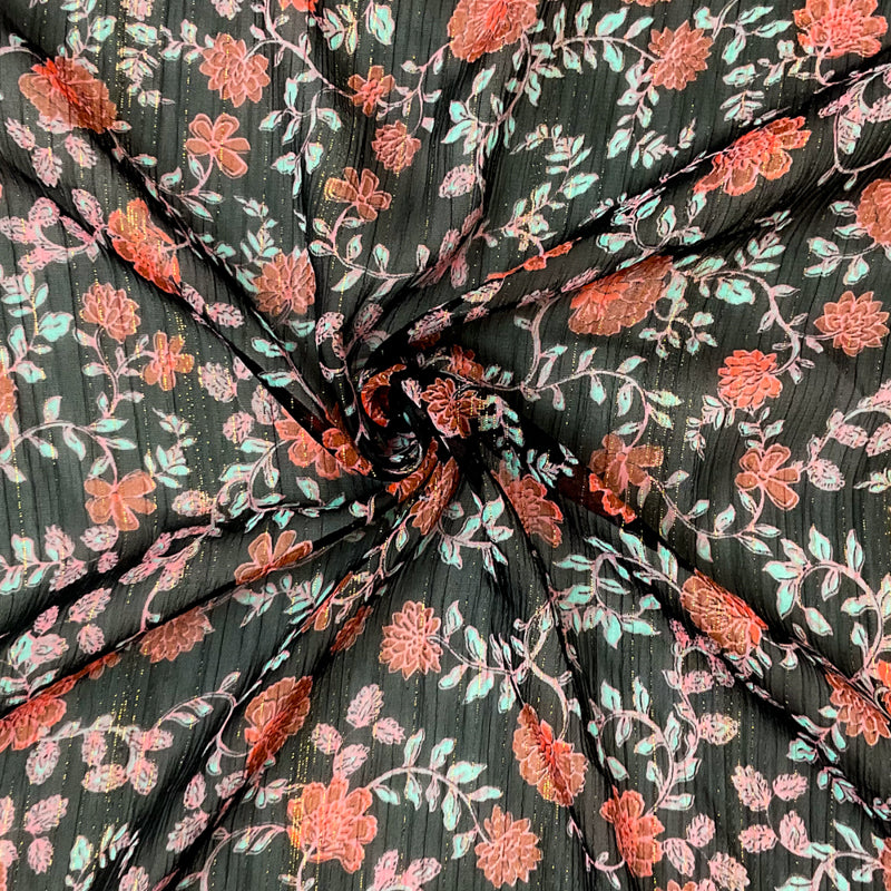 Black-Multi Poly Floral Metallic Print Yoryu Chiffon Woven Fabric
