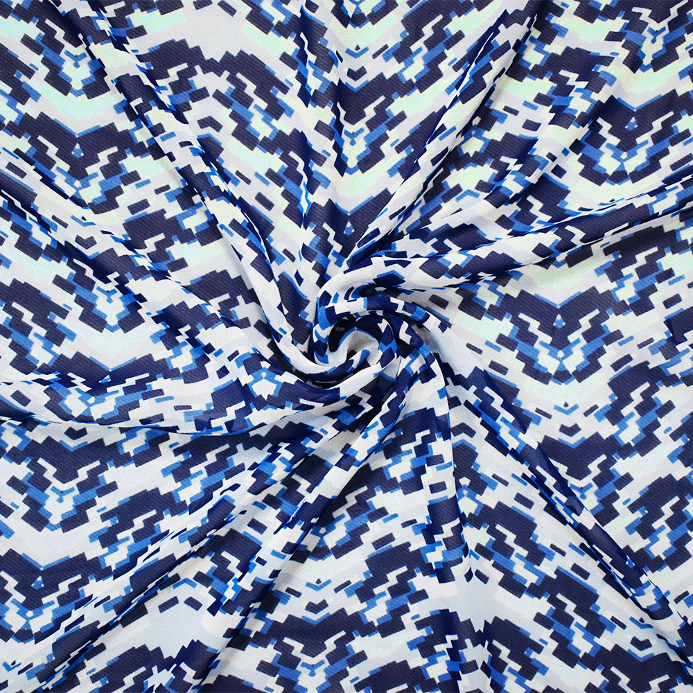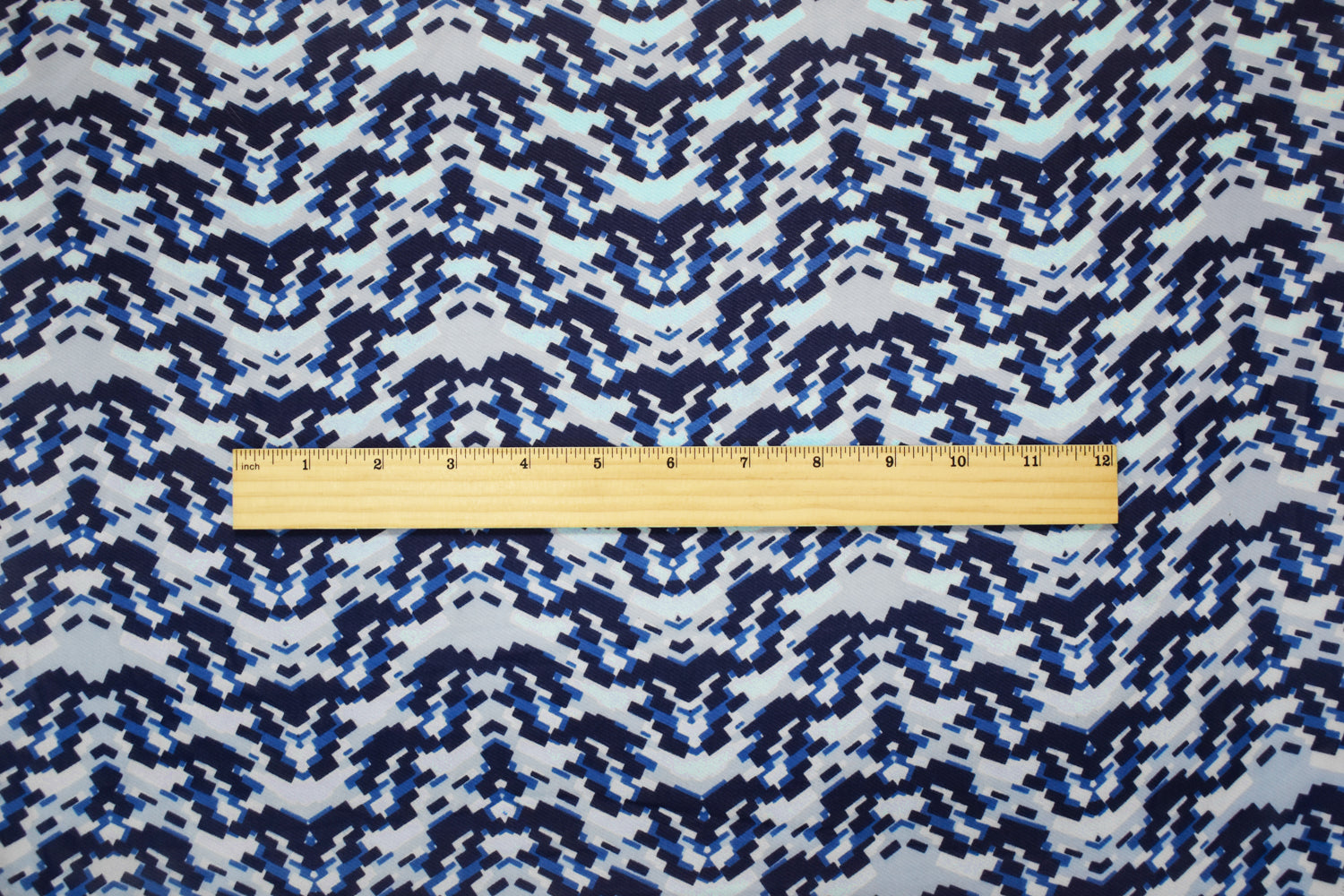 Blue-White Poly Pixel Chevron Printed Chiffon Woven Fabric