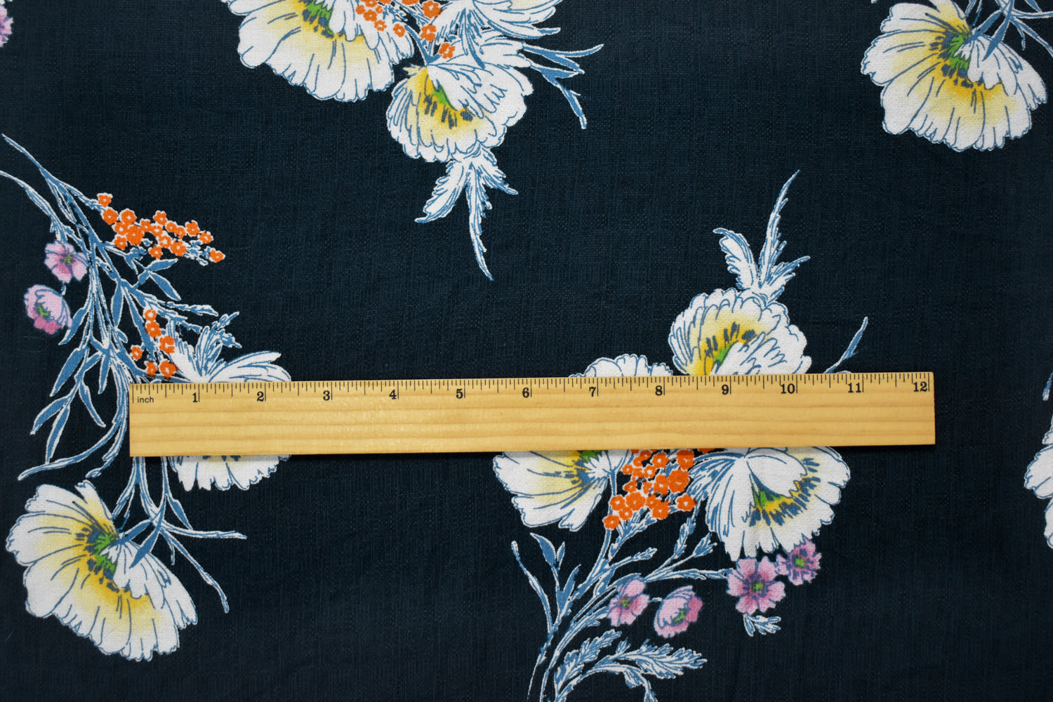 Dark Navy-Yellow-Multi Cotton Poly Floral Printed Dobby Woven Fabric