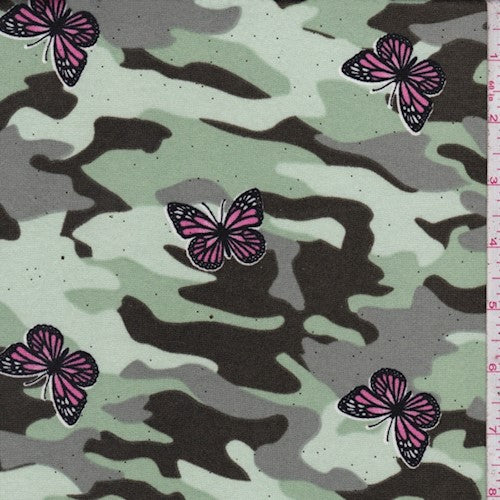 Multi Sparkle Butterfly Camo Double Brushed ITY Knit Fabric