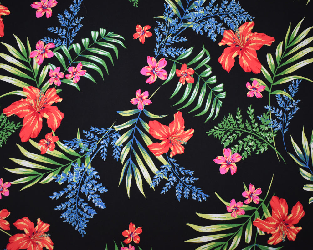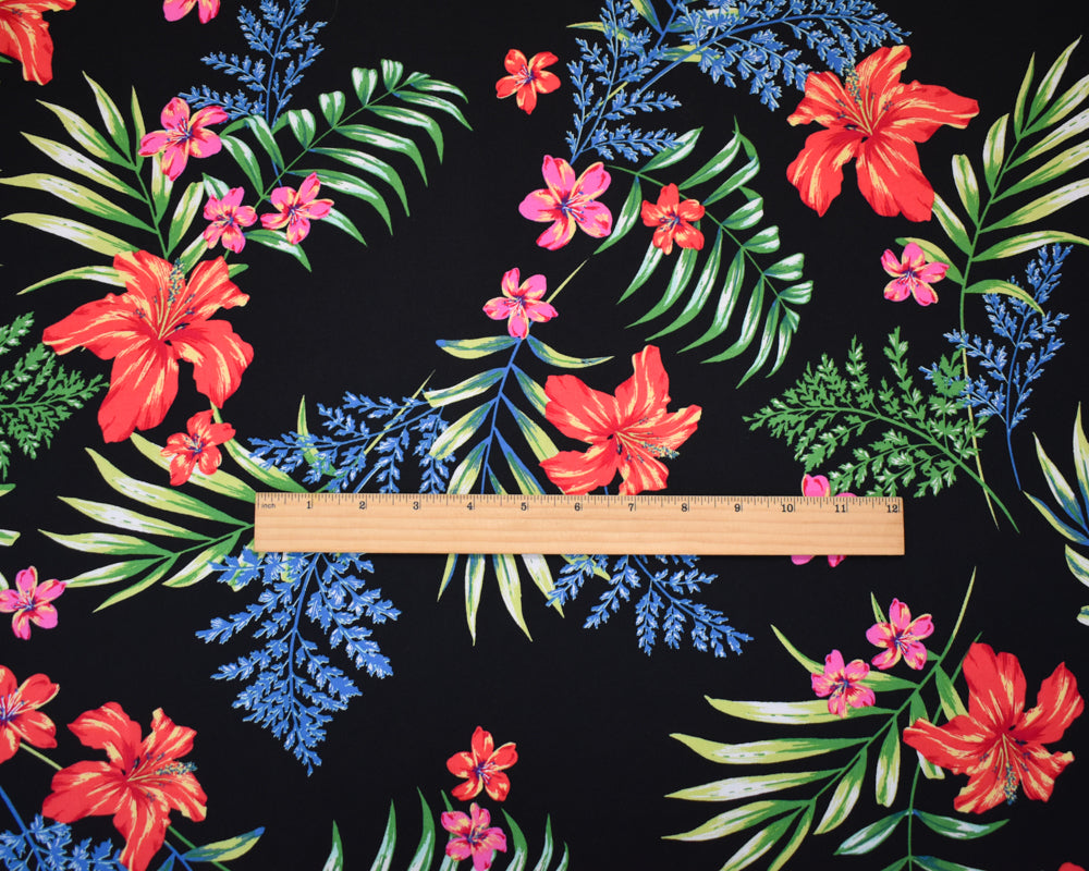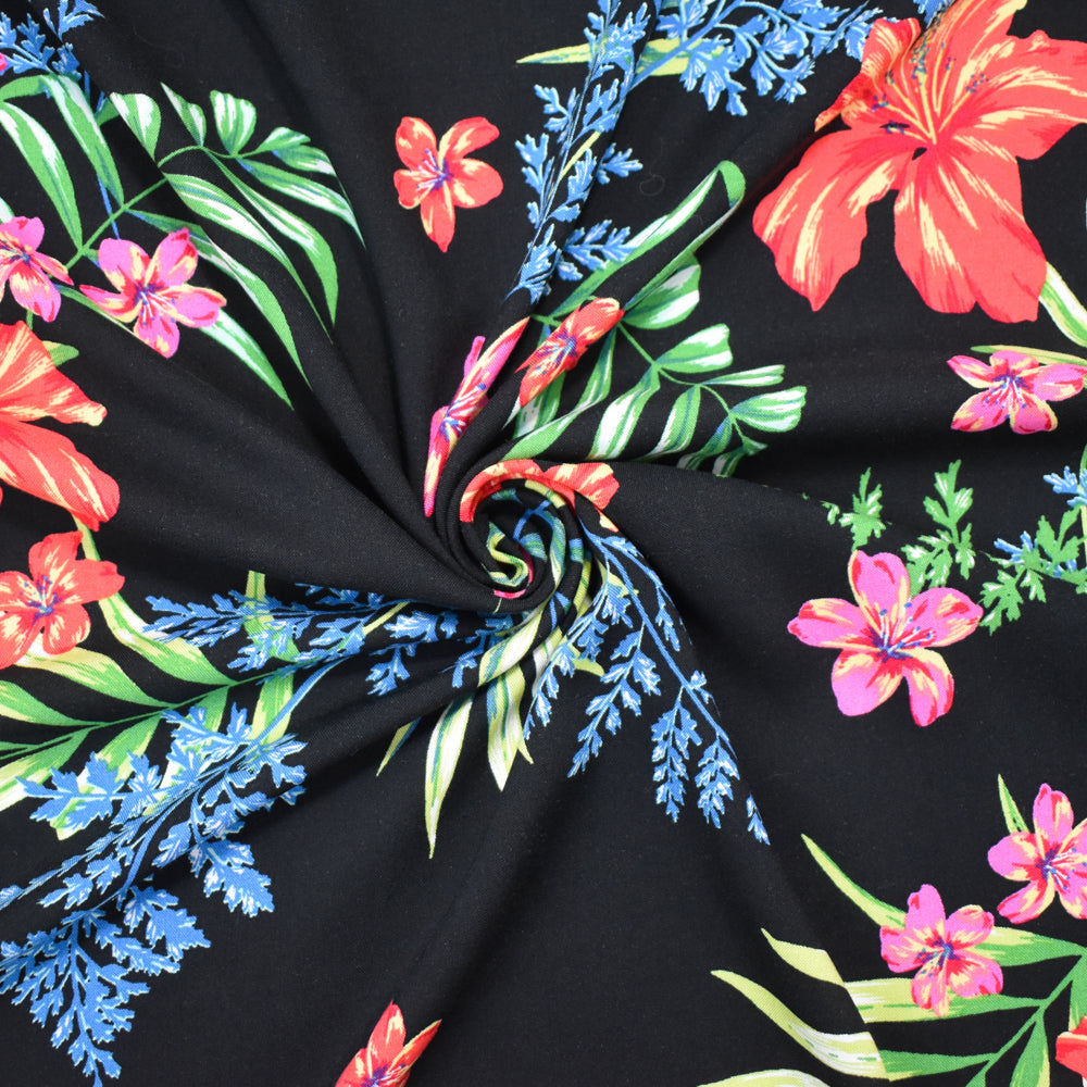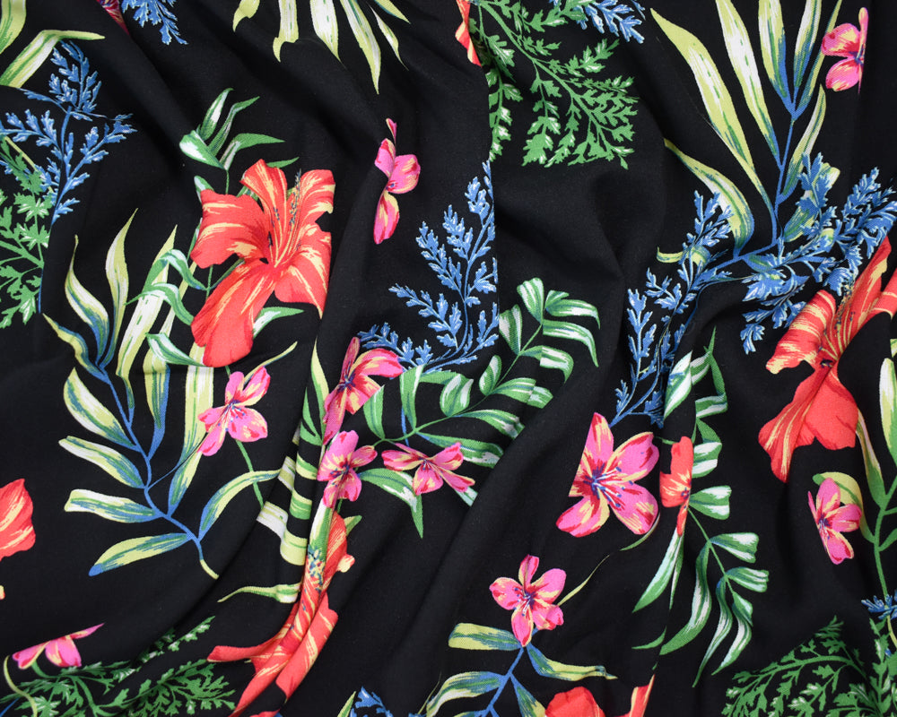 Black-Green-Multi Rayon Floral Printed Challis Woven Fabric