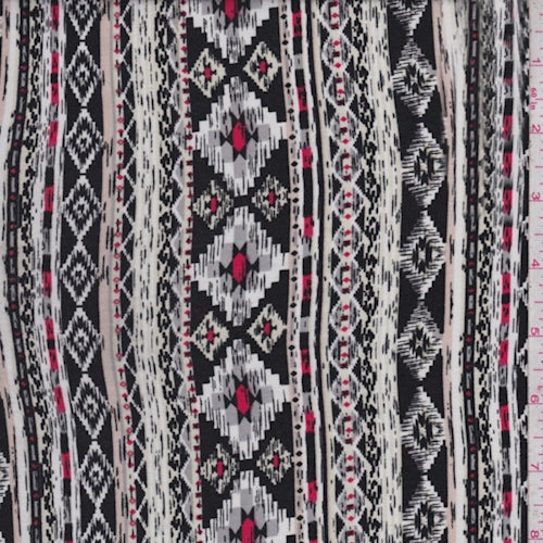 Black/Grey Southwest Stripe Rayon Challis Fabric