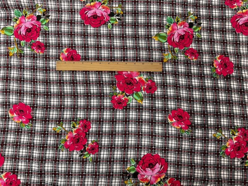 Black-Red-Multi Rayon Floral Plaid Printed Challis Woven Fabric