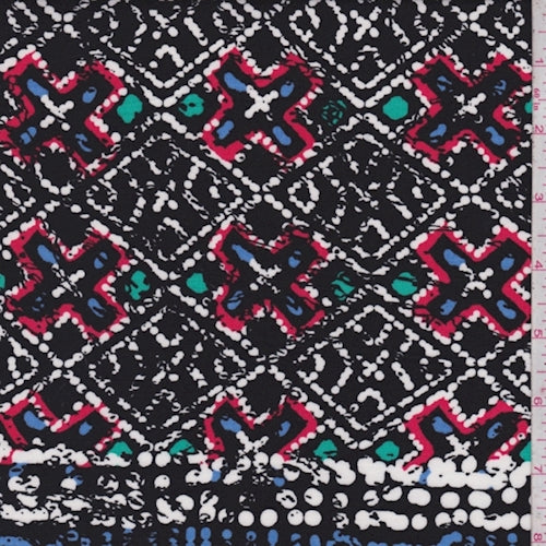 Black/Royal/jade Mosaic Rayon Challis Fabric