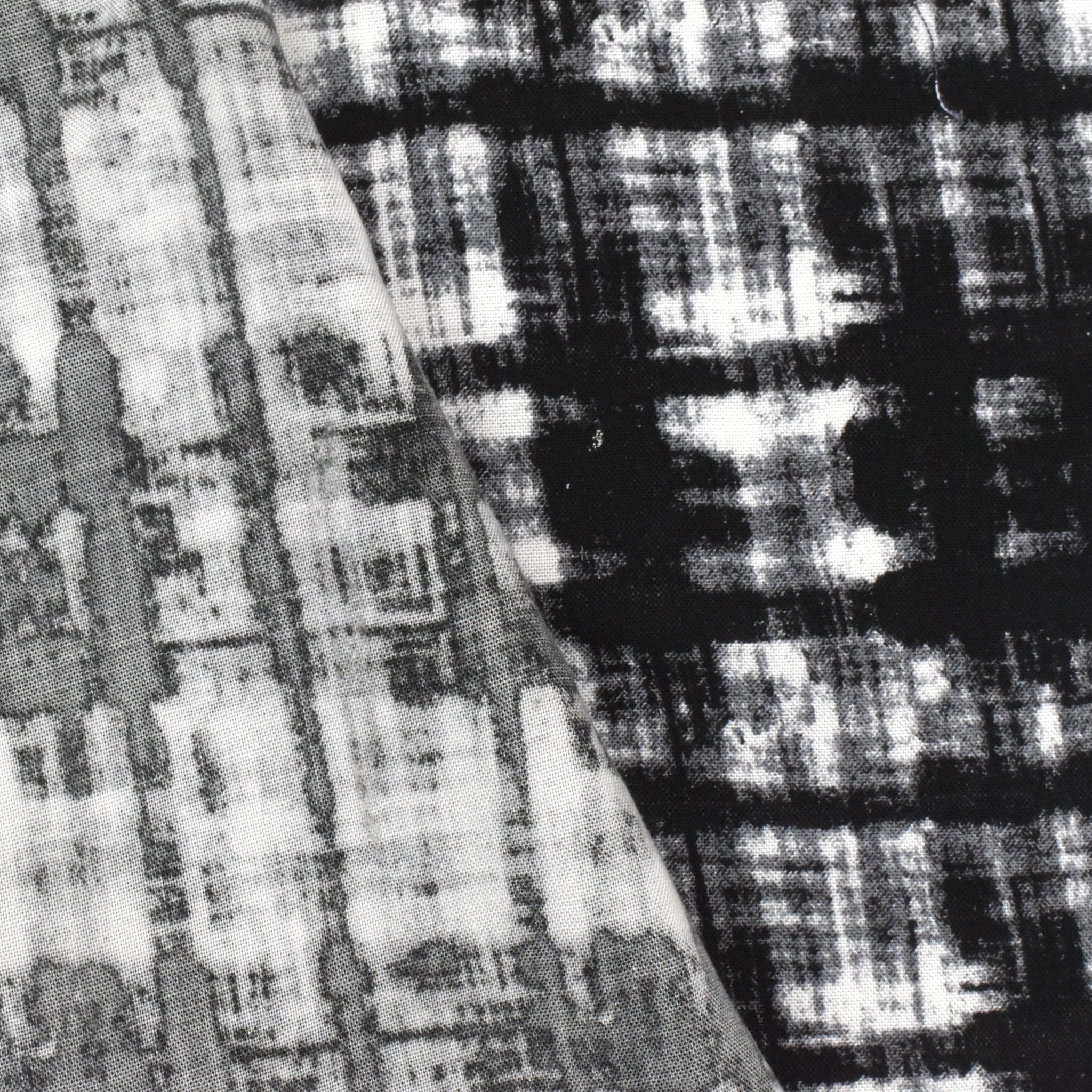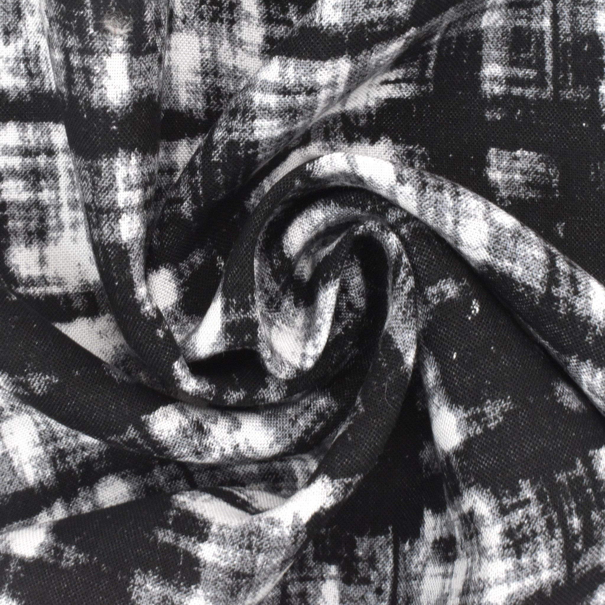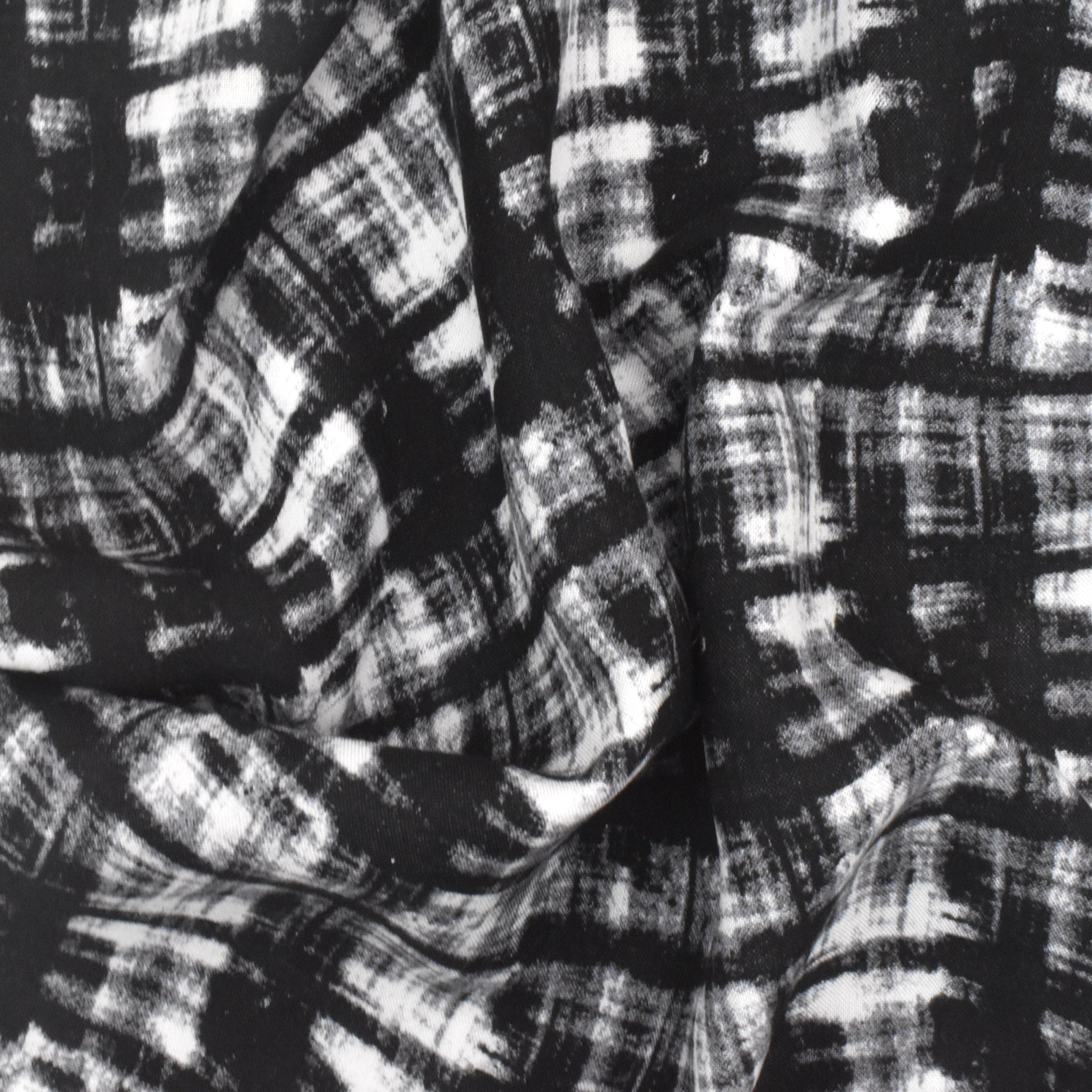 Black-White-Gray Abstract Cross Hatch Printed Challis Fabric