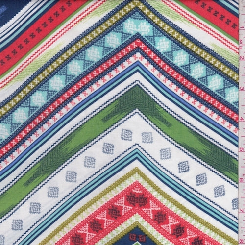 Blue/Orange/Green Zig Zag Rayon Challis Fabric