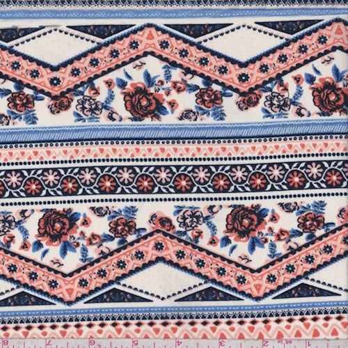 Bone/Clay/Blue Floral Chevron Challis Fabric