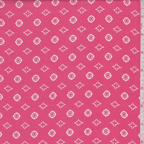 Coral/White Mini Medallion Rayon Challis Fabric