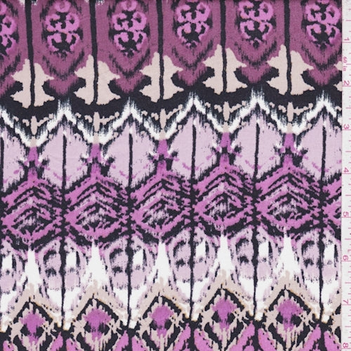 Fuchsia/Berry/White Ikat Diamond Rayon Challis Fabric