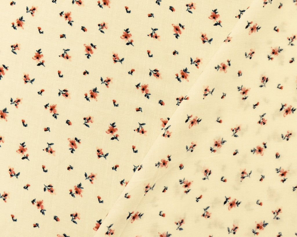-100% Rayon challis woven fabric printed with a ditsy floral pattern