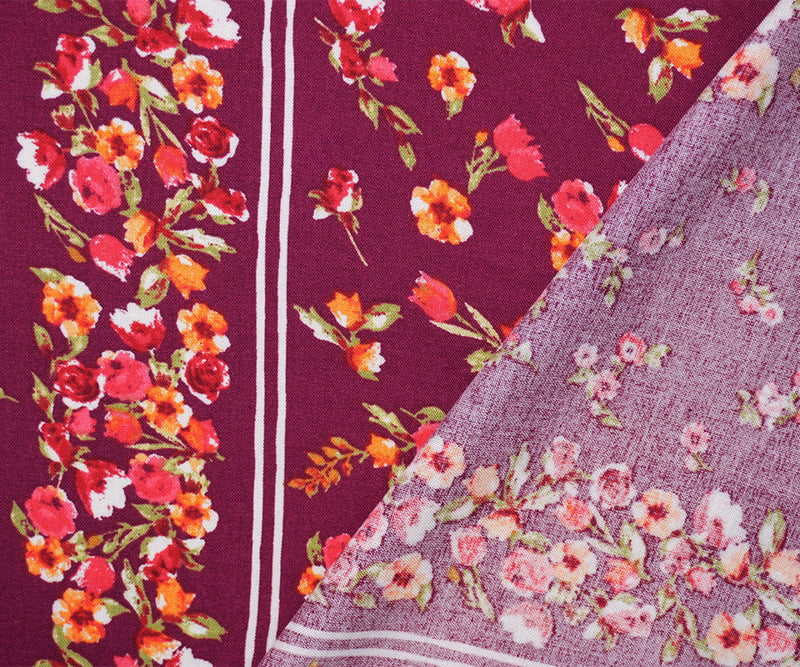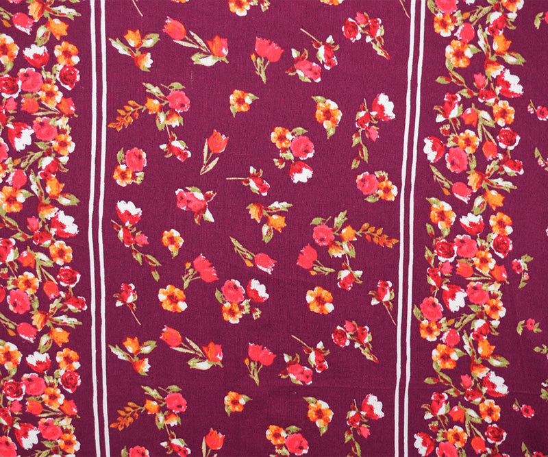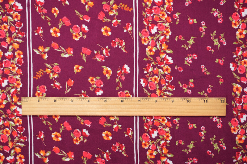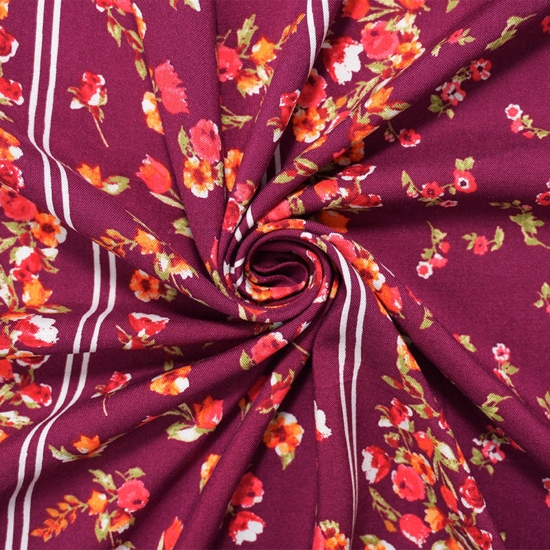Magenta-Multi Rayon Floral Stripe Printed Challis Woven Fabric