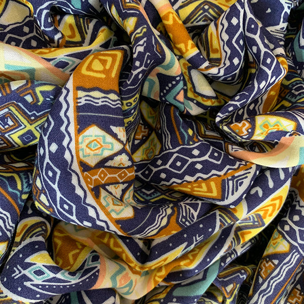 Navy Blue Multi Print Rayon Challis Fabric