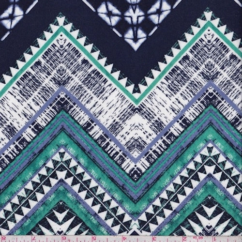 Navy/Jade/White Tribal Chevron Rayon Challis Fabric