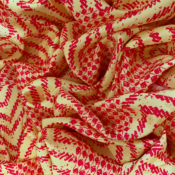 Neon Red and Yellow Geometric Print Rayon Challis Fabric