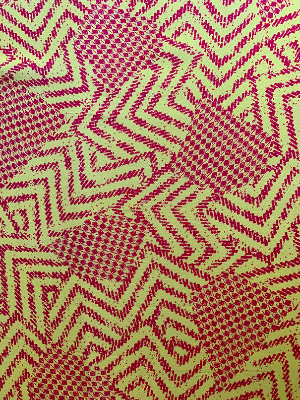 -Neon Red and Yellow Geometric Print Rayon Challis Fabric