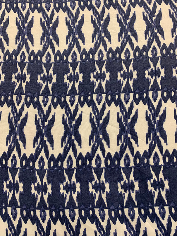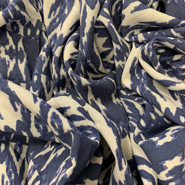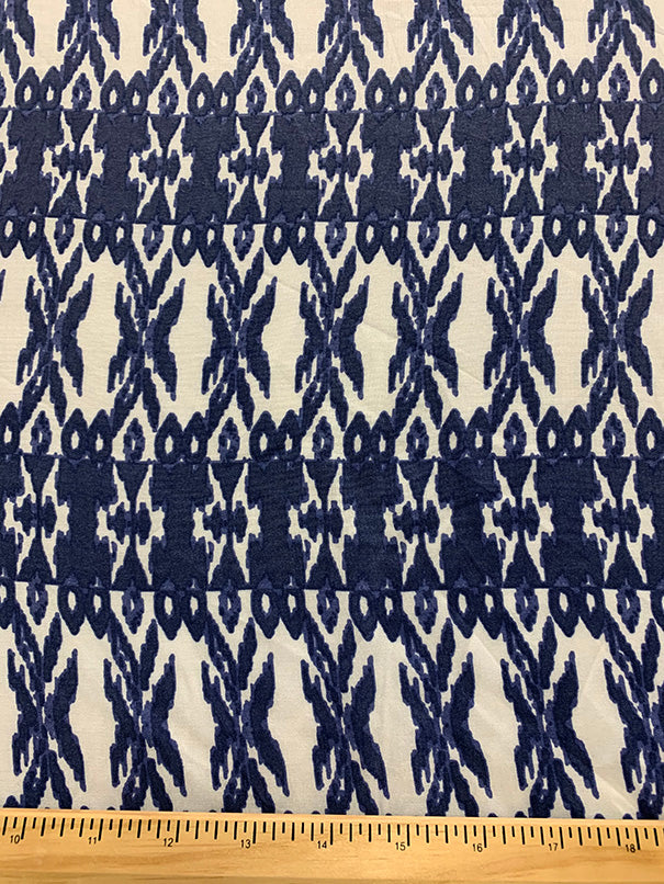 Periwinkle and White Stripe Print Rayon Challis Fabric