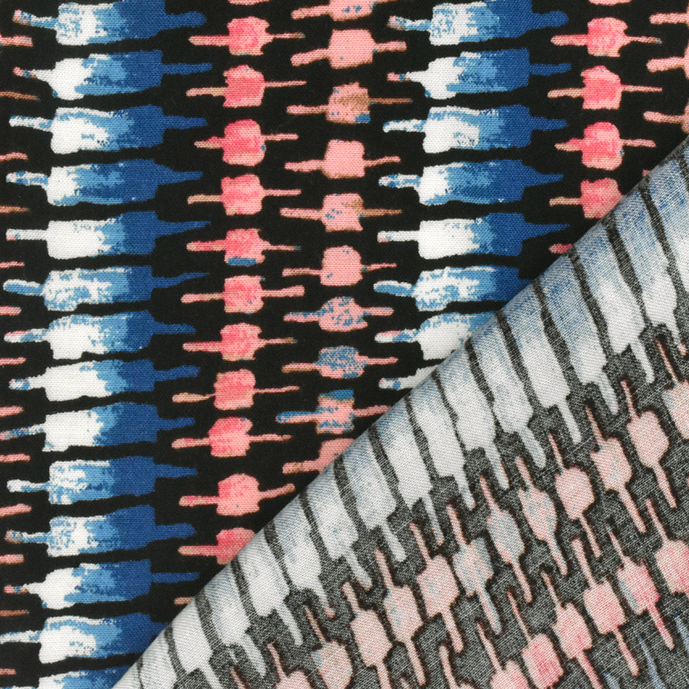 Pink-Blue-Multi Tribal Printed Rayon Challis Woven Fabric