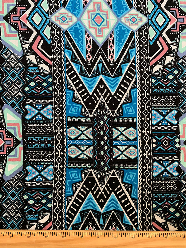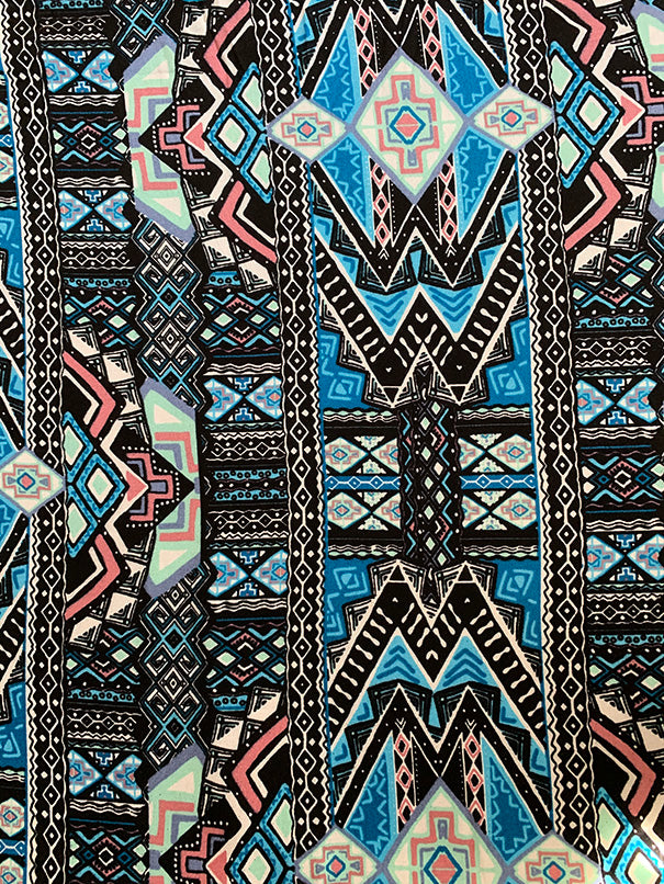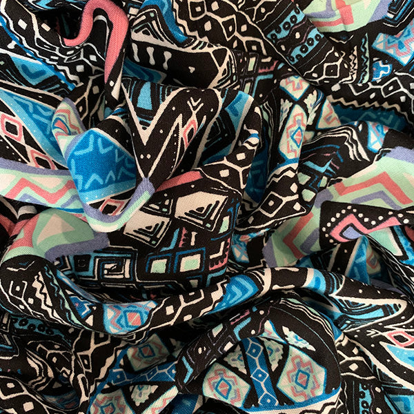 -Turquoise, Mint Green, White, Black, & Pink Print Rayon Challis Fabric