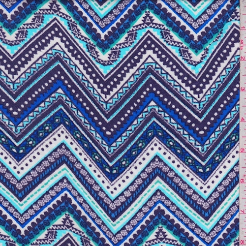 Turquoise/Cobalt/Navy Zig Zag Rayon Challis Fabric