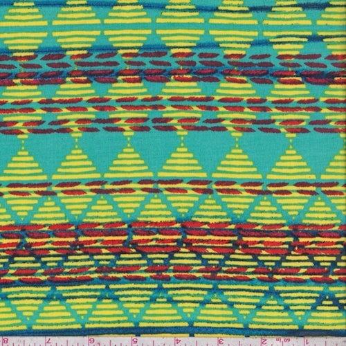 Turquoise/Lemon Linear Diamond Rayon Challis Fabric