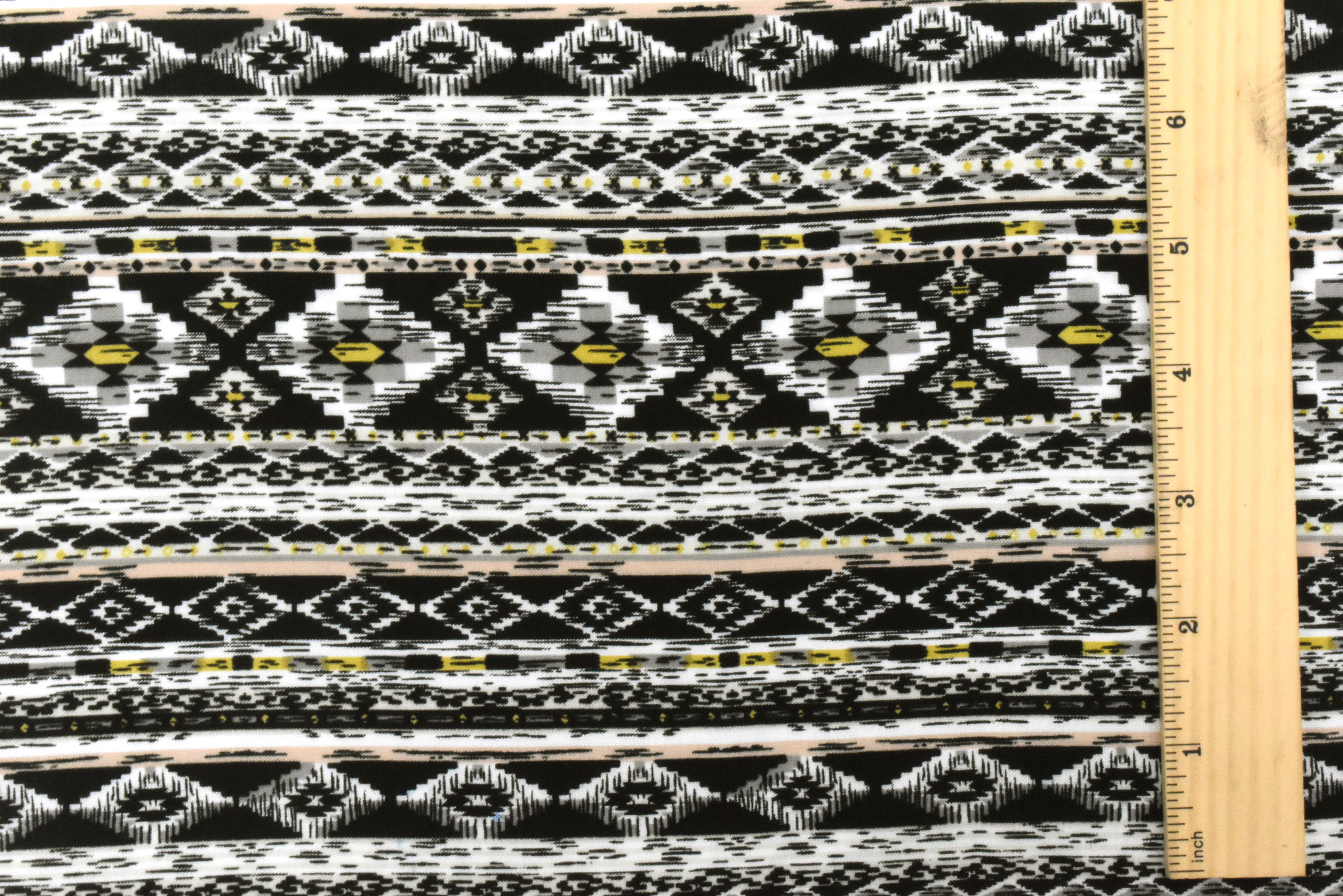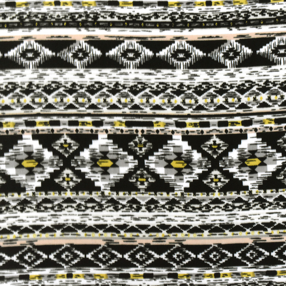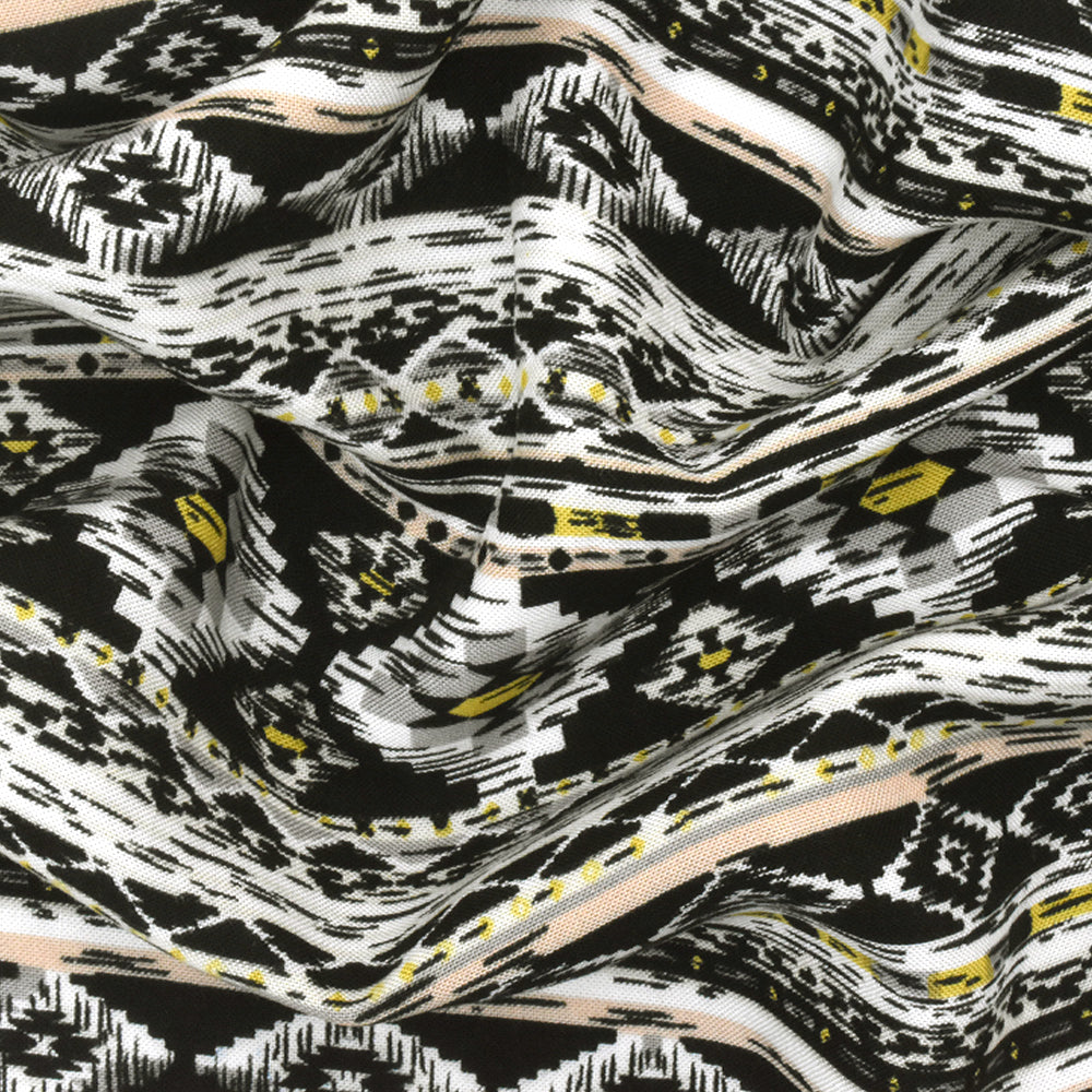 White-Gray-Multi Aztec Stripe Printed Rayon Challis Woven Fabric