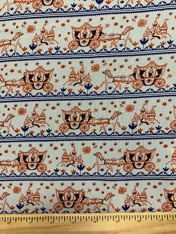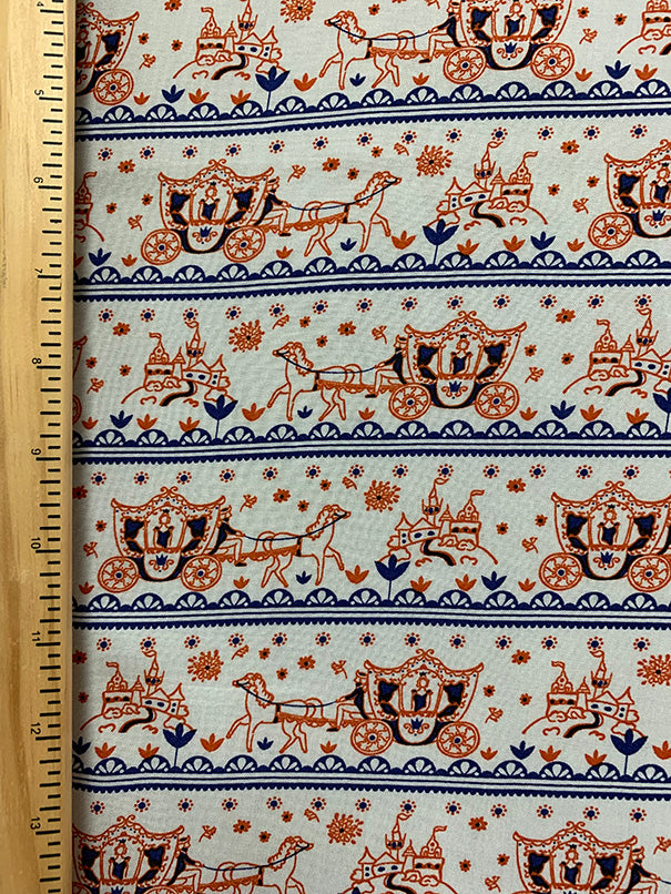 White Multi Horse Carriage Stripe Rayon Challis Fabric