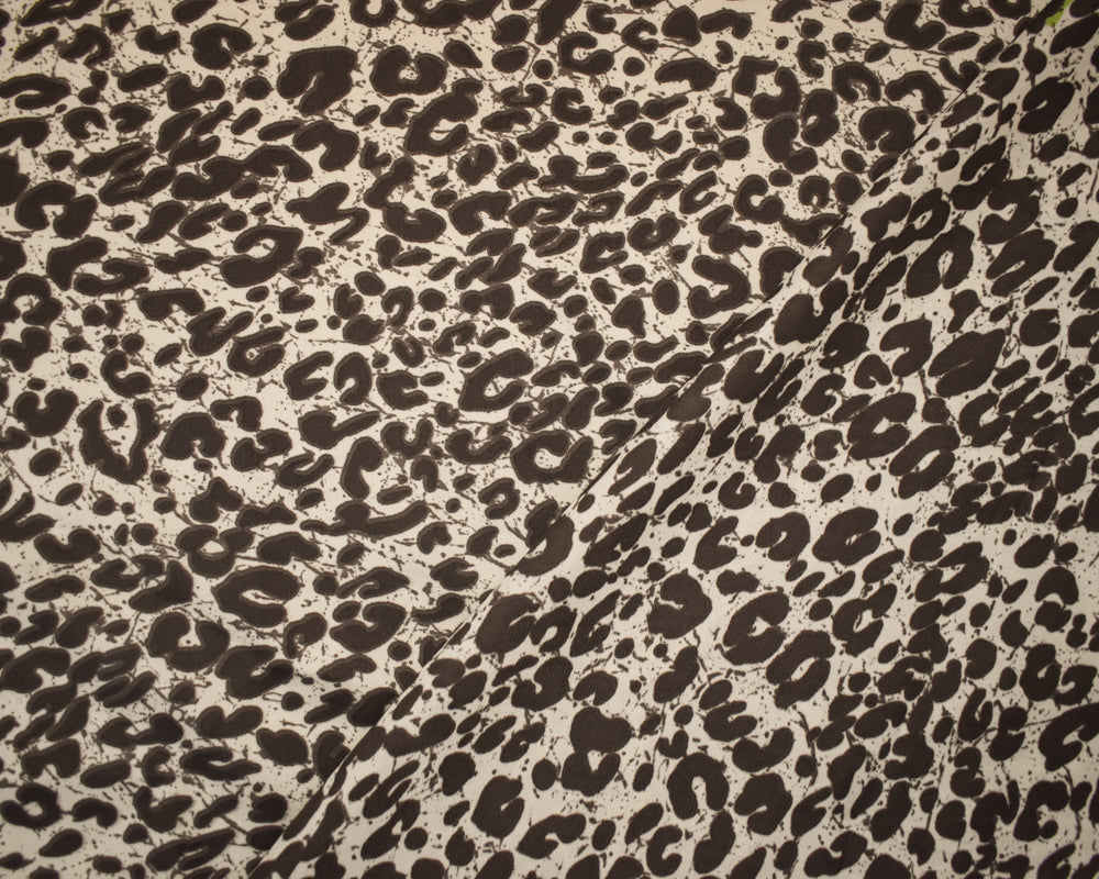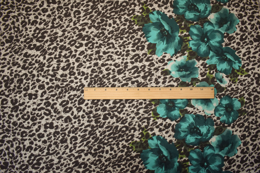 Brown-Multi Poly Leopard Floral Border Printed Charmeuse Satin Woven Fabric