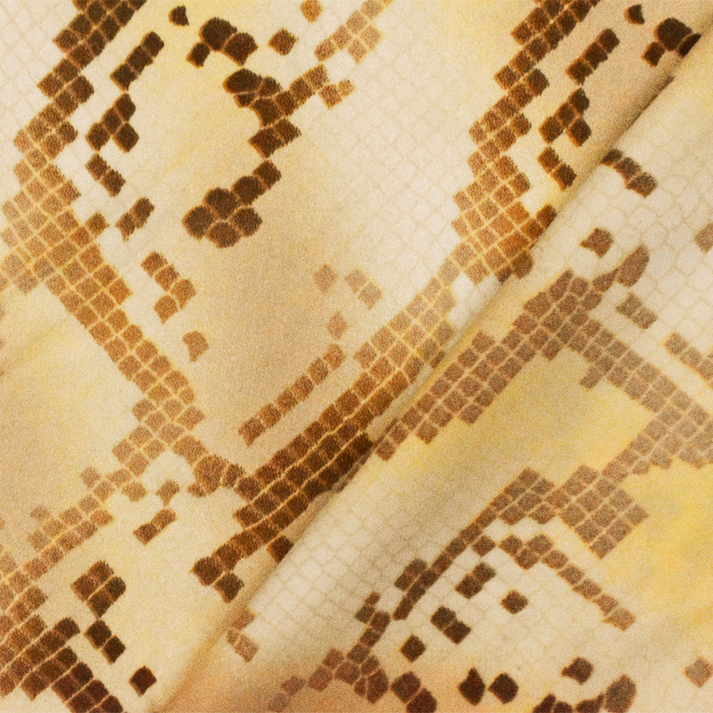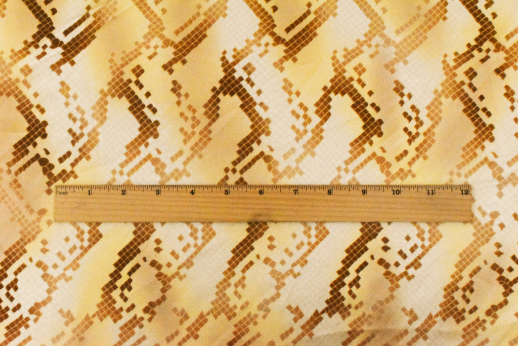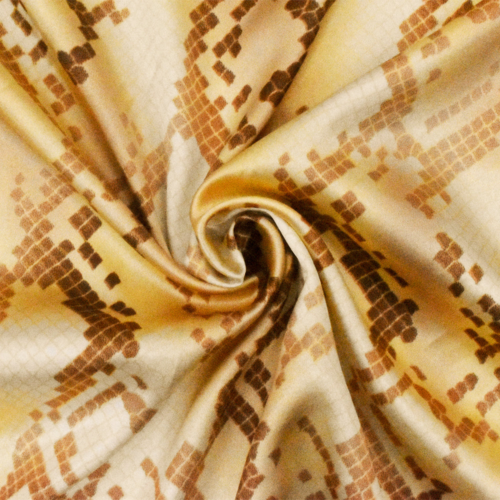 Sunshine Yellow-Brown-Beige Snake Printed Poly Charmeuse Satin Woven Fabric
