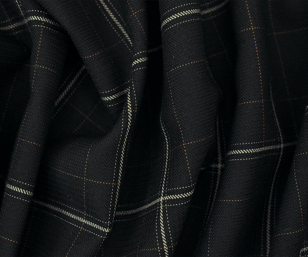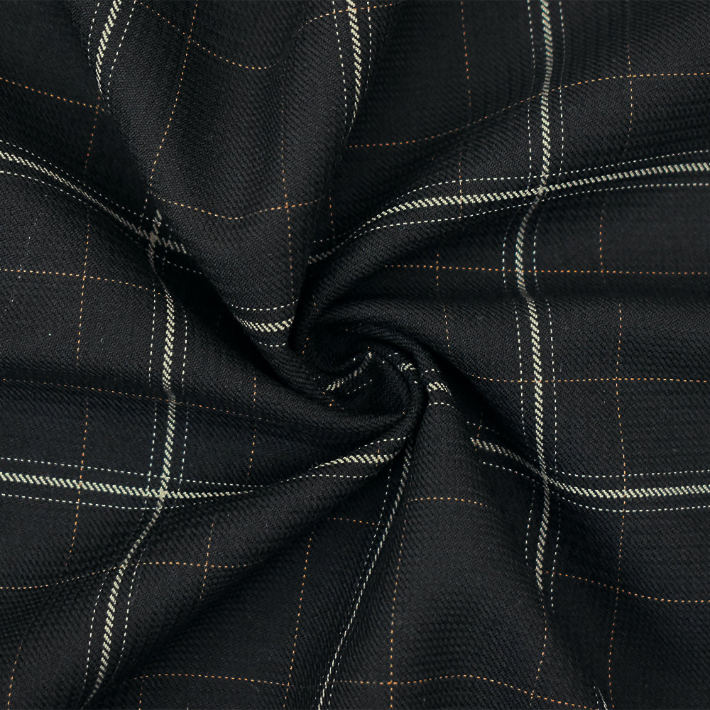 Black-Gray-Brown Wool Polyester Grid Plaid Twill Suiting Fabric