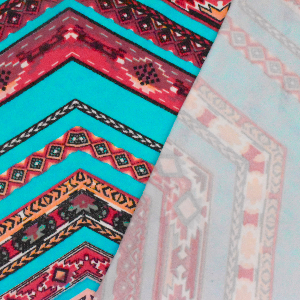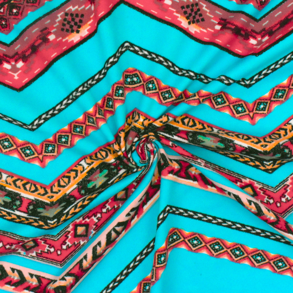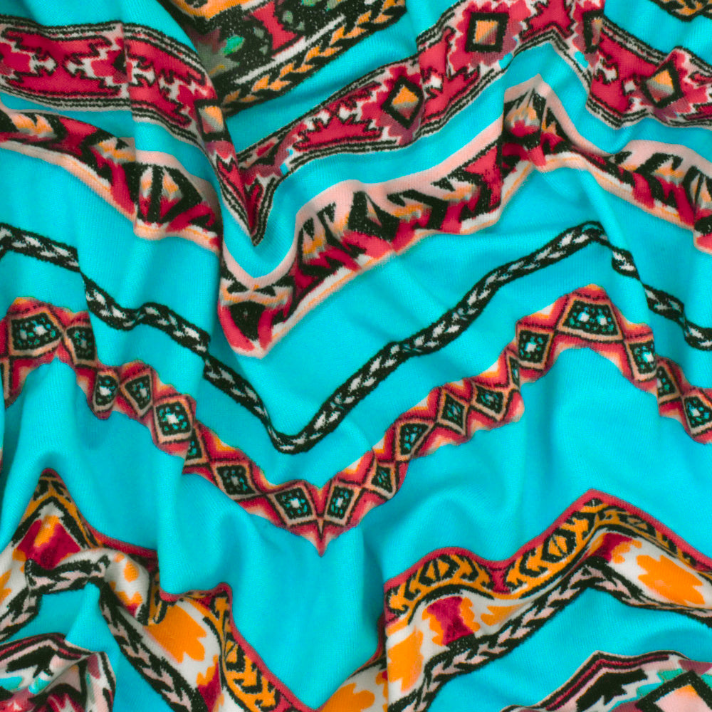 Aqua-Red-Multi Tribal Chevron Printed ITY Knit Fabric